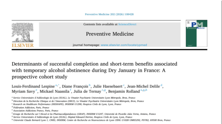 Une étude prospective menée auprès de plus de 2000 participants au Dry January 2024 en France met en lumière les facteurs favorisant la réussite du défi d’un mois sans alcool et ses bénéfices à court terme. Les taux de réussite s’élèvent à 57 % (62 % parmi ceux visant l’abstinence totale).